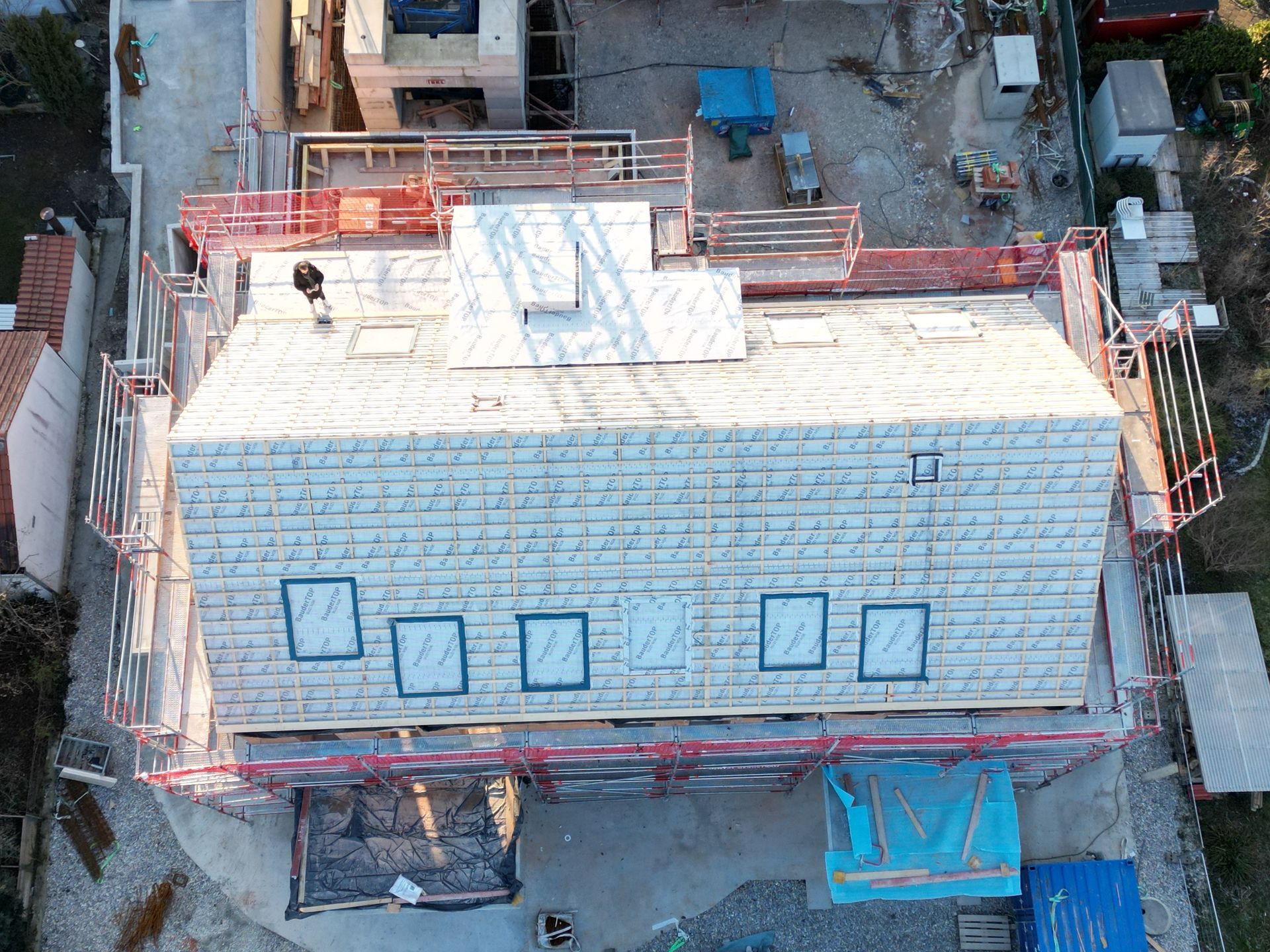 Der Bau ist nun komplett abgedichtet und somit vor jeder Witterung wie Regen, Schnee oder ähnliches geschützt.